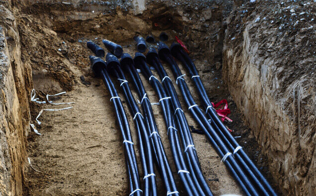 Expert installation of mains cabling from network pillars to metre boxes with correct segregation, depth and protection as required by electrical distributors.
